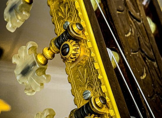 Dette instrument blev bygget af hos di Giorgio i 1974. Blandt dets karakteristiske træk er brugen af Bahia-palisander og et mørkt indfarvet dæk af gran. Udover det normalt udskårne hoved har topmodellen her en pyntebinding som indrammer hovedet. Stemmeskurerne er af særlig høj kvalitet og det sammen kan siges om indlæg og kantbindinger.