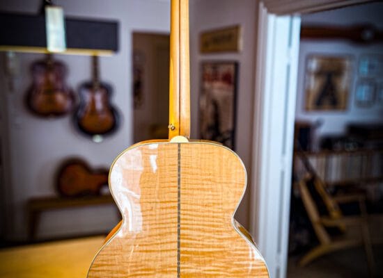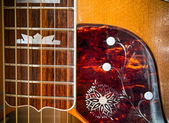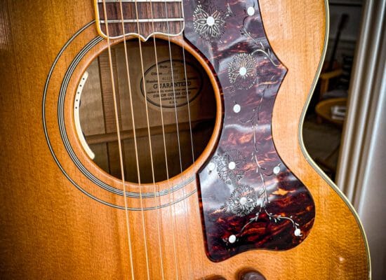 Gibson J200-model er blevet brugt af toneangivende musikere gennem årtier. Dens massive, karakteristiske tone har skåret sin plads i guitarverdenen og popkulturen. Det er en stor guitar; en Jumbo, som j’et i modelnavnet angiver. Den enorme krop giver masser af volumen og varme bastoner, men er ikke for musikere med korte arme.