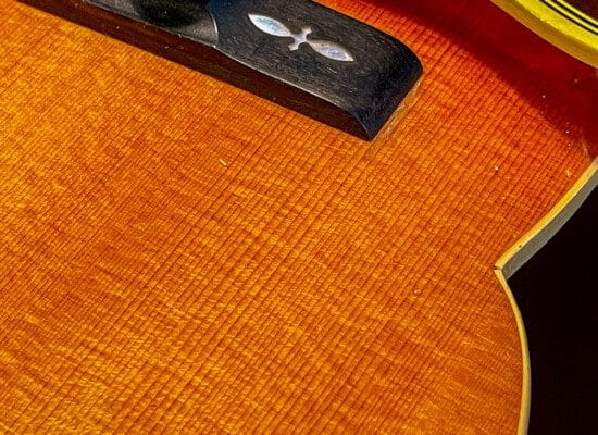 Det fornemme og massive dæk i gran, som er karakteristisk for Gibsons topmodeller, viser sine akustiske fordele. Det er en vidunderlig klingende archtop med masser af varme, åbenhed og projektion. Den akustiske side af denne guitar er helt himmelsk. Tilsluttet den rette forstærker synger pickuppen virkelig med og understreger guitarens varme og ikke mindst, fremhæver den træets tone.