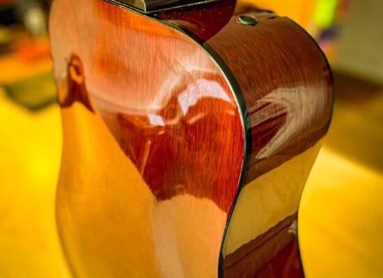Guitaren her har undergået en omsætning af halsen, reparation af gribebræt, slibning og polering af bånd og en omfattende rengøring efter tape og limrester inde i kroppen. En del lakreparationer er nænsomt udført i mikrotyndt lag af Nitrocellulose-lak.