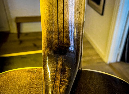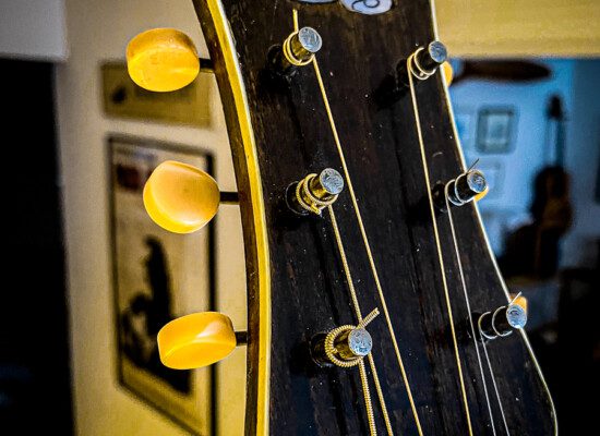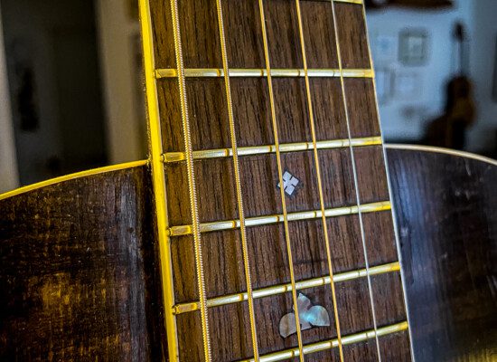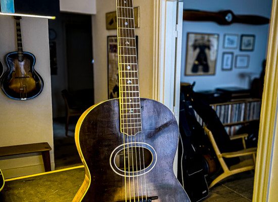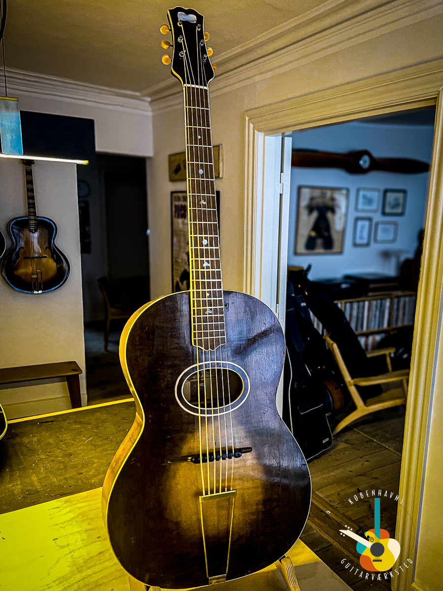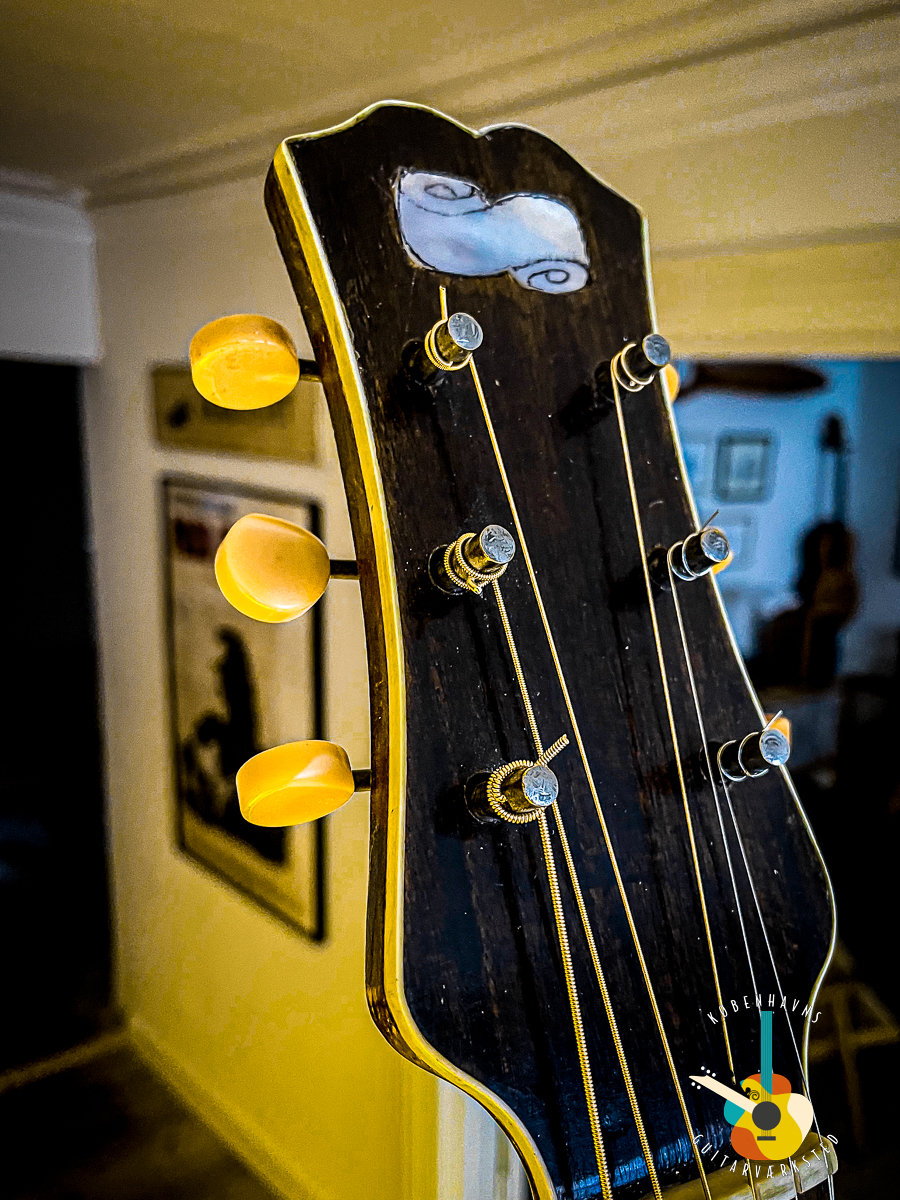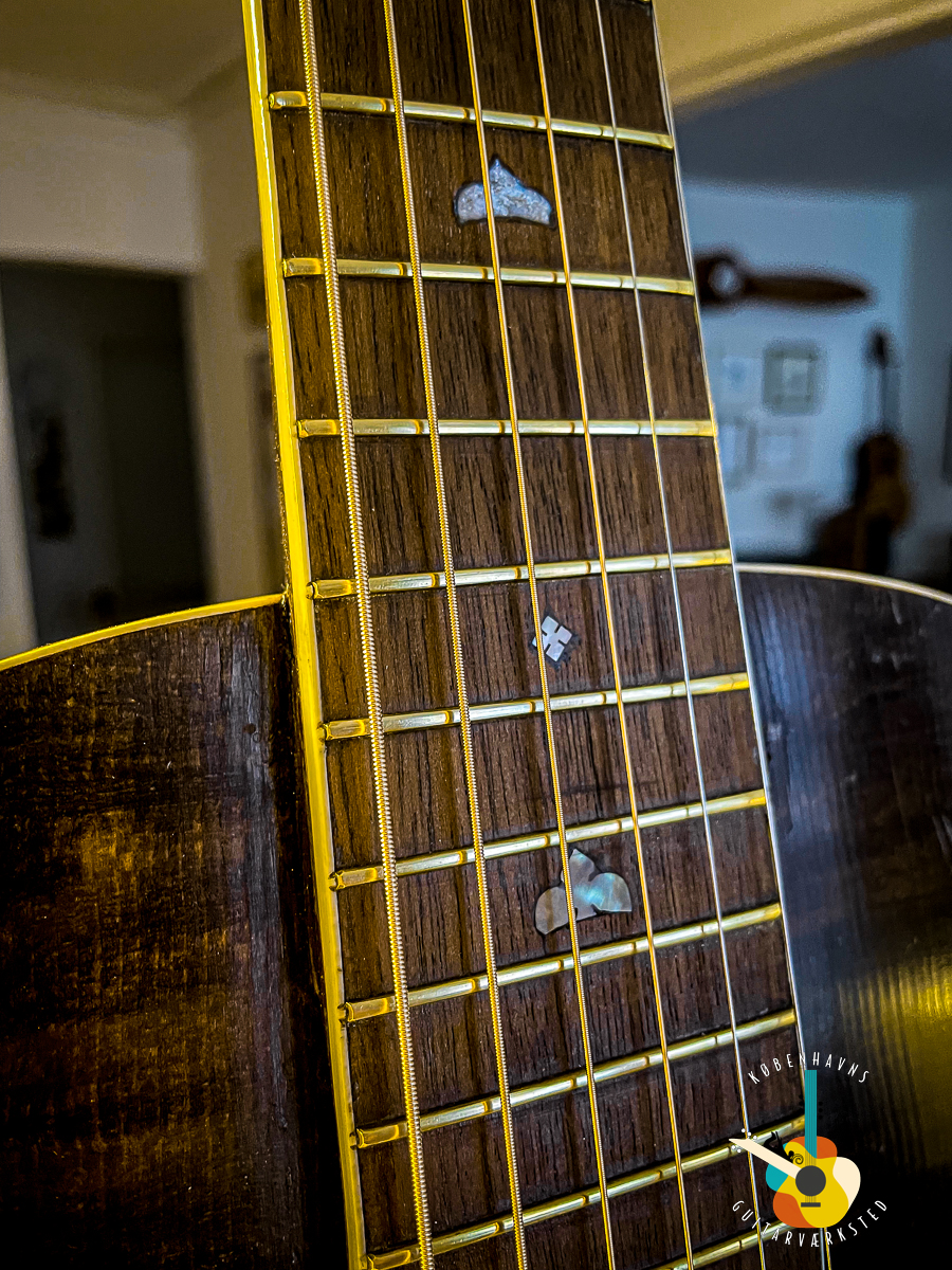 Model FG fra 1946 med buet dæk, stålstrenge og løs stol. En karakteristisk, men meget vellydende og letspillet guitar. På trods af alderen og adskillige større reparationer i dæk og ryg, føles guitaren stadig robust.
