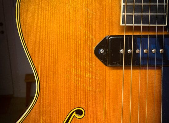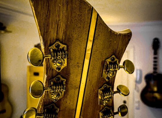 Jeg har restaureret guitaren og lavet, revner i kroppen, samt en hel del mindre reperationer på halsen. Stemmeskruerne er blevet gennemgående restaureret, da de er for smukke til at udskifte. På elektroniksiden er der lavet bedre afskærmning af P90 pickuppen og usynlige volume- og tonekontroller er placeret på bagsiden af slagpladen.
