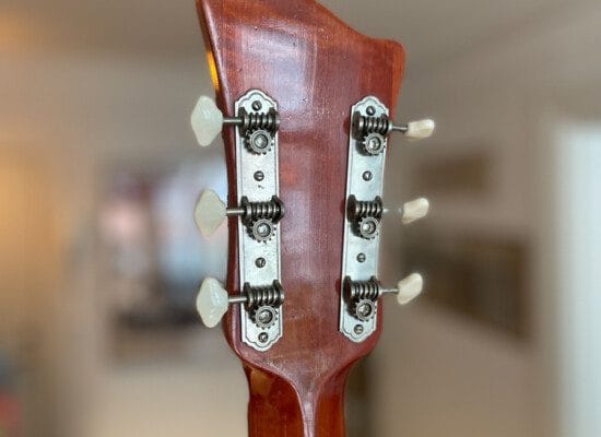 Svalehaleudskæringen som forbinder halsen med kroppen på mange europæriske guitarer – som her på denne gamle Levin – er ikke så avanceret som på de amerikanske, hvorfor de er noget mere afhængige af præcis tilpasning og en god tæt limning.