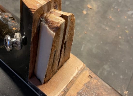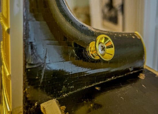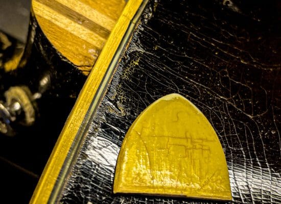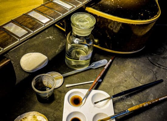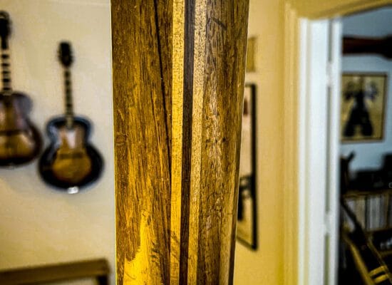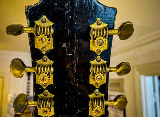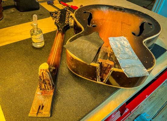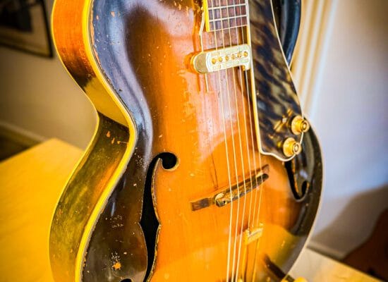 Denne Broadway har været endnu et af årets store projekter. En halsomsætning og reparation af “svalehalen” som forbinder halsen til kroppen var nødvendig, for at få ændret halsvinkelen, som skulle give plads til en Dearmond Rhythm King pickup. Volume og tonekontroller fik plads i slagpladen. Der var flere revner som skulle laves på dækket og på bagsiden, der skulle nye bånd i gribebrættet og en restaurering af halsens indsatte “truss rod” var nødvendig, da denne var groet helt fast. En række lakskader blev lavet med cellolose og forskellige indfarvninger af træet. Jeg undlod at indfarve skader som kun lå i det originale laklag og koncentrerede mig alene om dem som var kristiske for træets holdbarhed. Så guitaren er stadig voldsomt patineret, men ere blevet helt vidunderlig at spille på.
