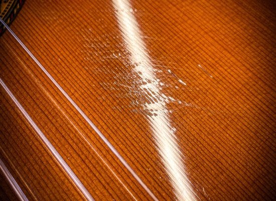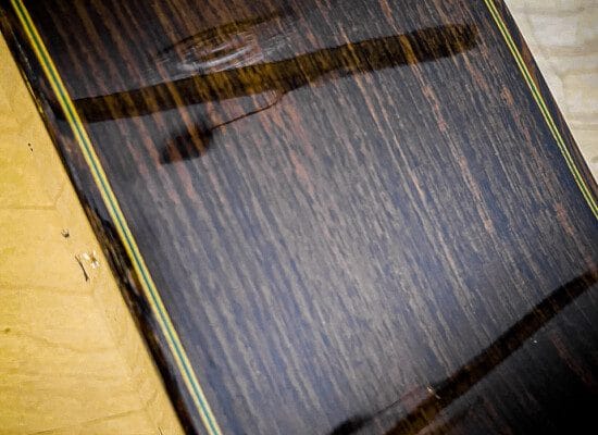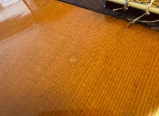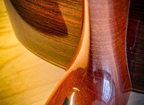 Nitrocellulose lacquer on the top, sides, and back.