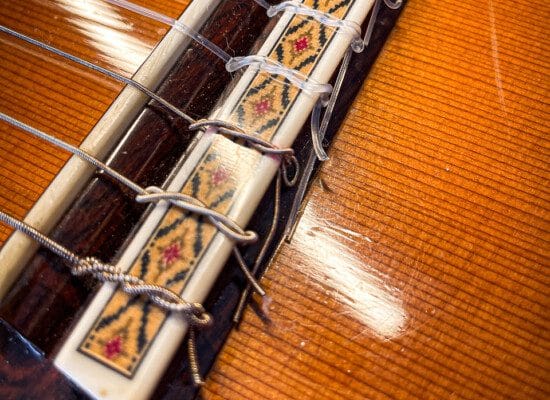 Laminated neck made of mahogany with laminations of ebony and an ebony fingerboard.