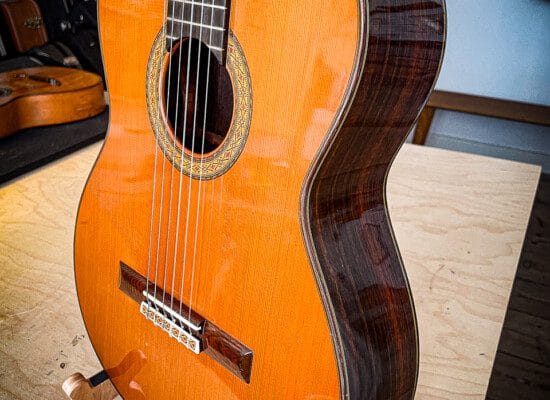Masaru Kohno (1926-1998) is a pivotal figure in the history of Japanese guitar making and a visionary luthier. Hailing from Mito City, Japan, he began his journey as a luthier after graduating from the Tokyo College of Arts and Crafts. In 1959, Kohno traveled to Spain to apprentice at Arcangel Fernandez’s workshop, where he spent six enlightening months. A significant milestone in his career came in 1967 when he won the Gold Medal at the Elizabeth’s Concourse International Guitar Building Competition in Belgium, earning him global recognition.