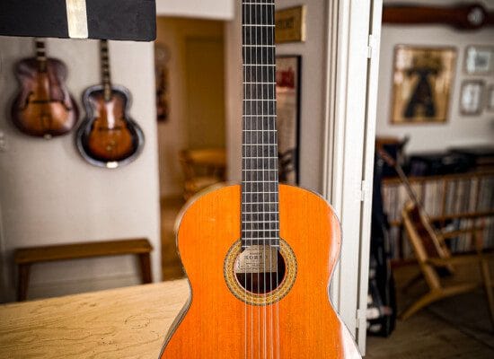 Denne guitar af Masaru Kohno fra 1977 er et vidunderligt instrument. Det er men Model 15, den næsthøjeste model på det tidspunkt, hvis navn er baseret på listeprisen på 150.000 yen dengang. Den har ryg og sider i smukt indisk palisander, med et smukt åreforløb, samt højkvalitets stemmeskruer og et hurtig reagerende dæk i grantræ. Dens tilstand er meget god, med velfortjente overfladiske spillemærker og en honningfarvet finish.