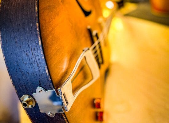 Jeg har lavet en ny saddel i ben samt ændret lidt på broens geometri og slebet rammen omkring pickuppen, så vinklen bedre følger kroppen. Guitarens ejer var ikke helt tilfreds med lyden af tre nederste strenge, som havde en noget klagfattig lyd. Særligt den nye saddel har afhjulpet problemet og gavnet lyden.