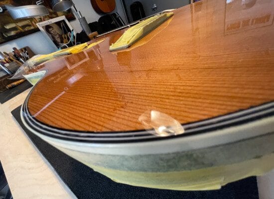 Bånd er nyslebet og poleret og et nyt sæt originale stemmeskurer blev fundet i USA og monteret det karakteristiske Ovation hoved.