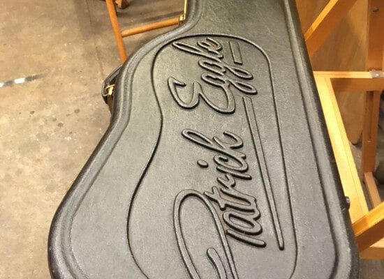 Patrick Eggle og hans lille team af guitarbyggere arbejder på værkstedet i Oswestry nær den walisiske grænse. Her producerer de guitarer af meget høj kvalitet.