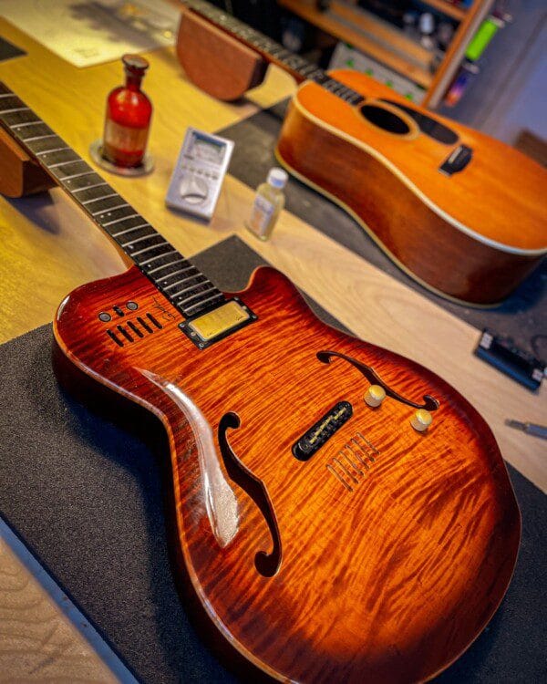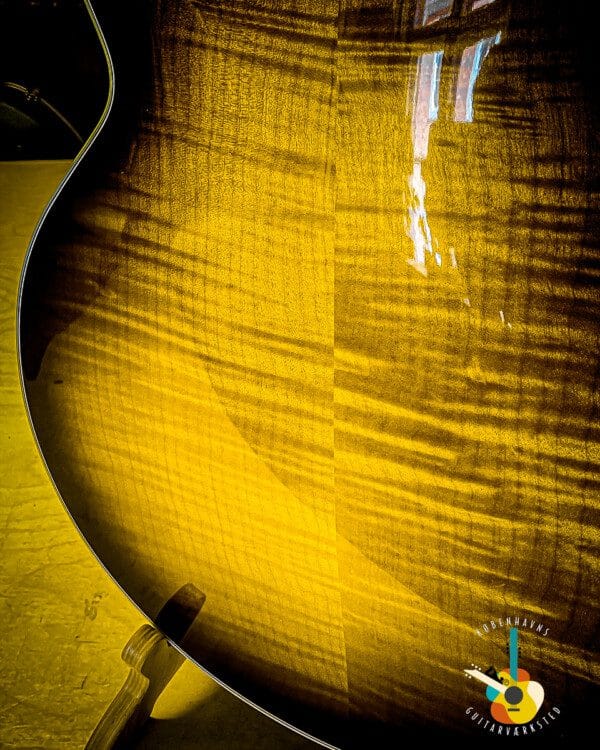 En guitar med tigerstribet ahorn er ikke bare et instrument – det er et håndlavet stykke kunst, hvor natur og håndværk går op i en højere enhed.